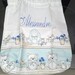 Personalized with a name machine embroidered in elegant cursive writing in colors matching the pattern or on request (indicate it after the name) in a large size.