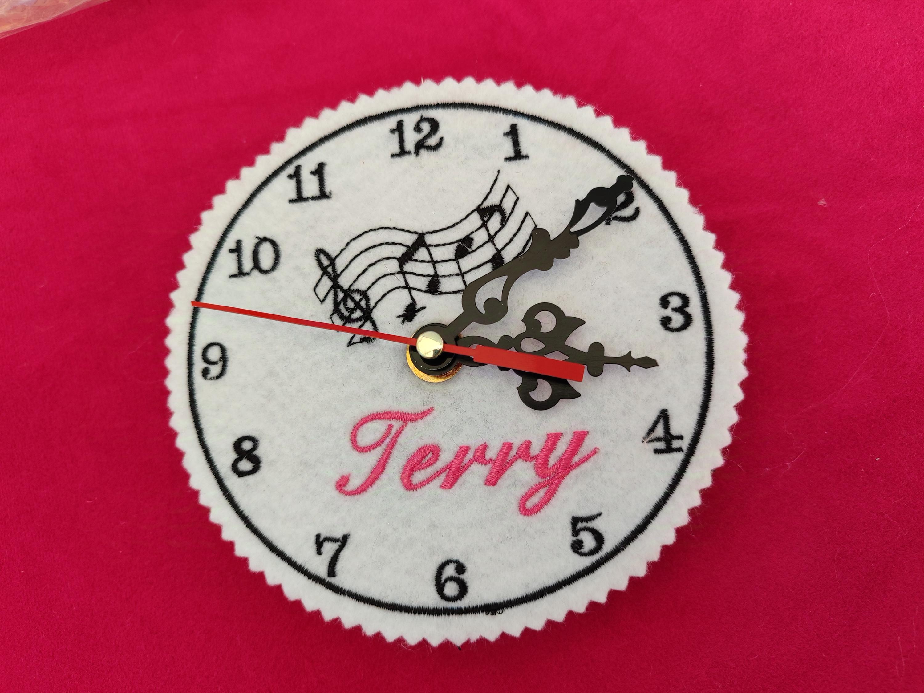 Personalized Gift - Small Embroidered Wall Clock with Name - Christmas Gift Idea