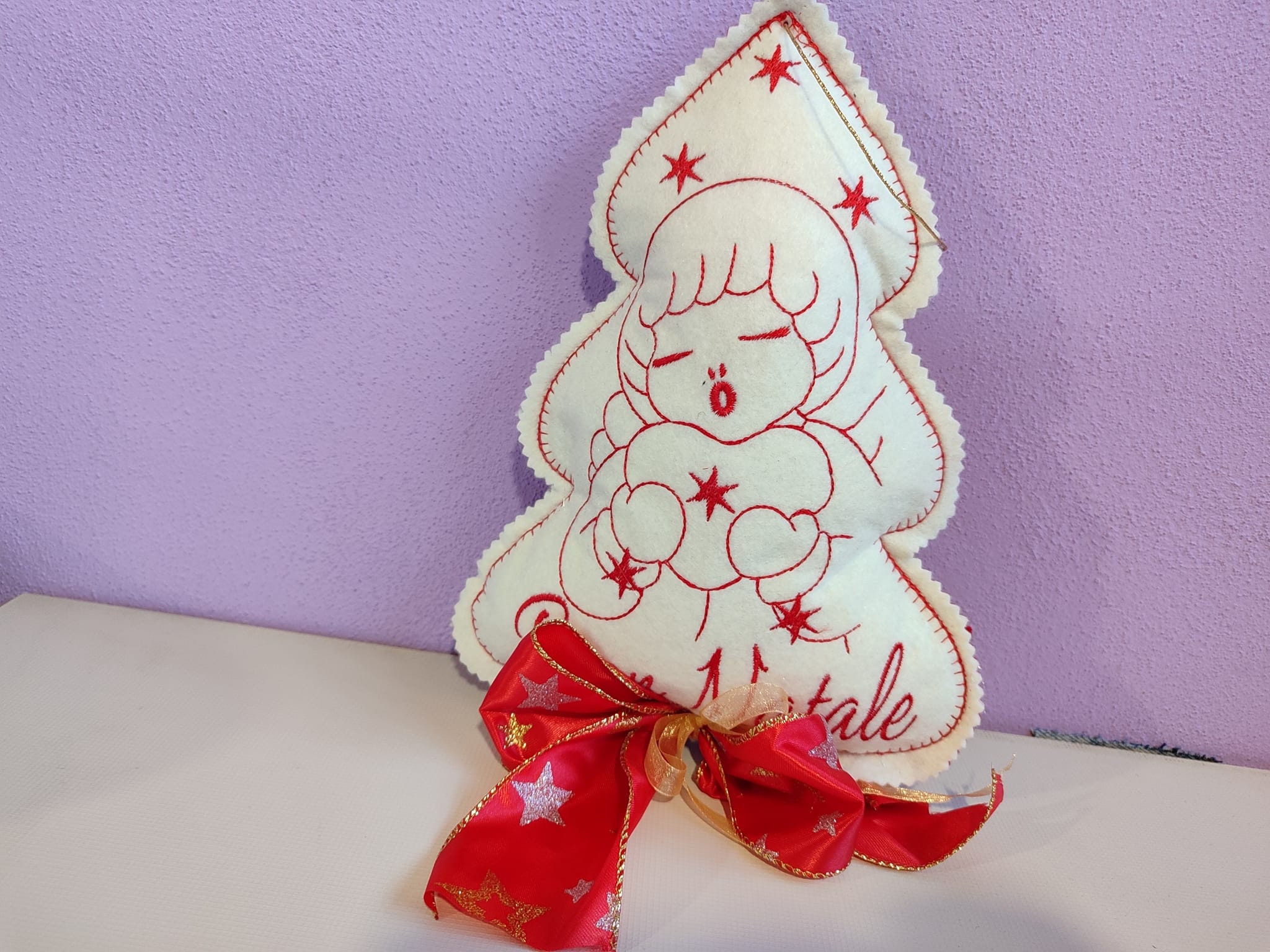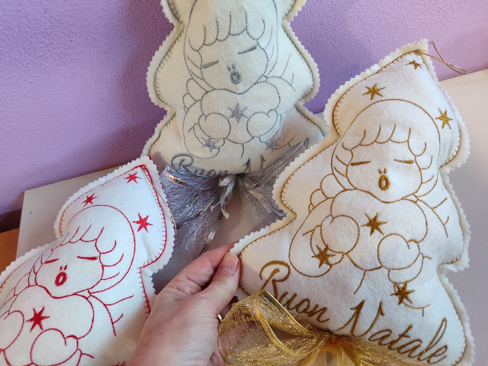 A delightful little angel is the protagonist of the doormat, made of felt and stuffed with wadding.