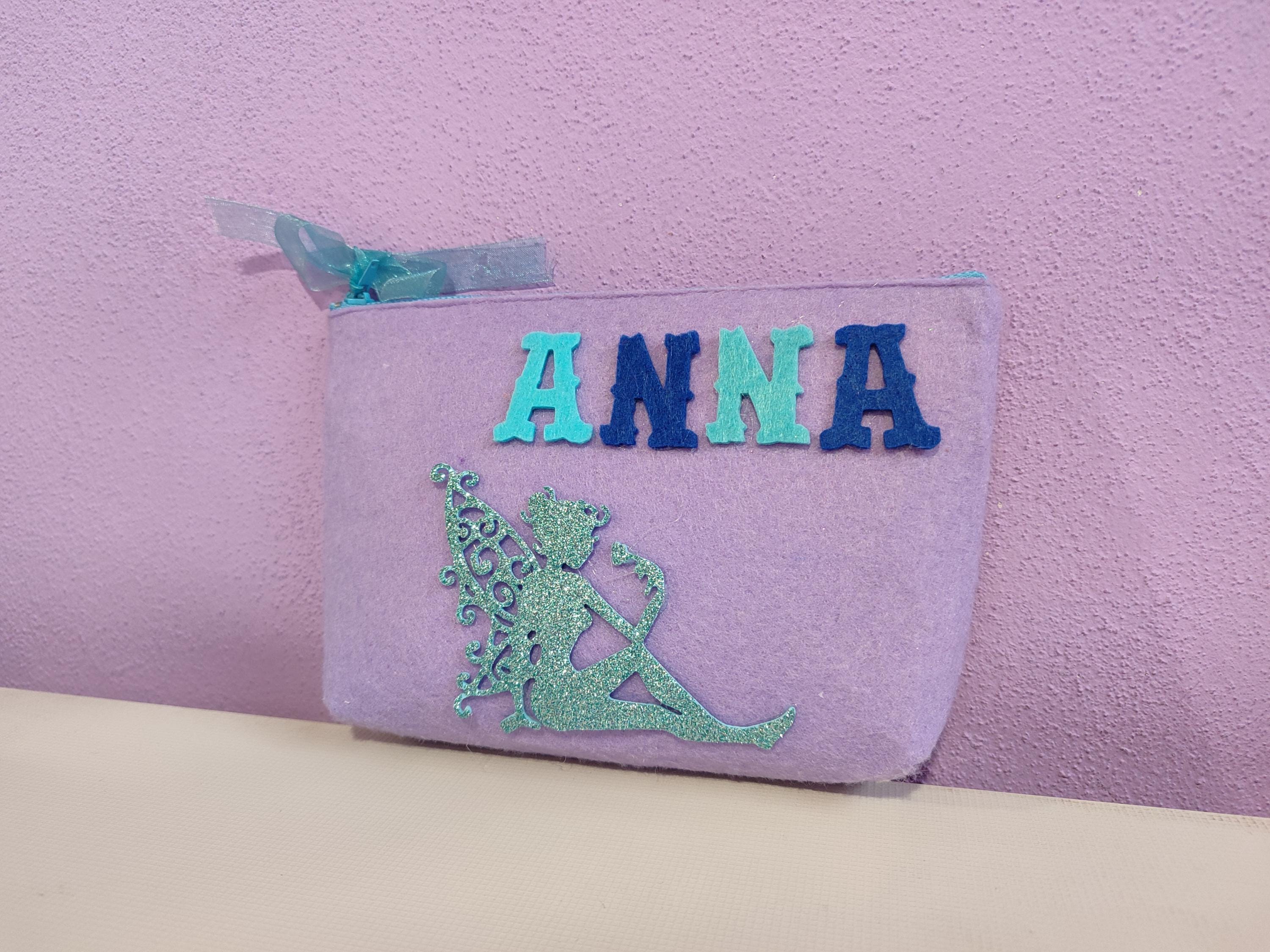 Astuccio fatto a mano di feltro colorato con nome, personalizzato nel tuo colore preferito.