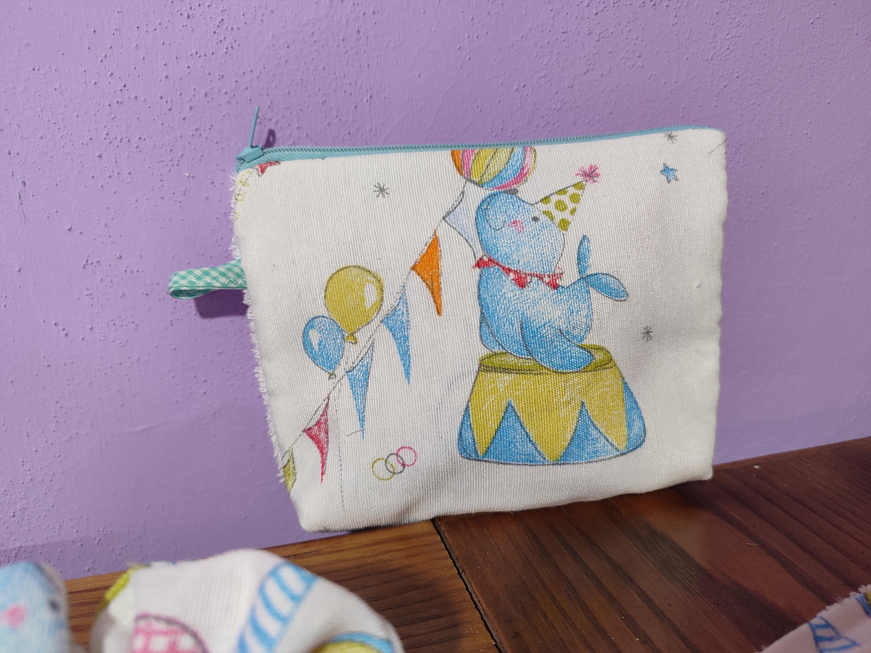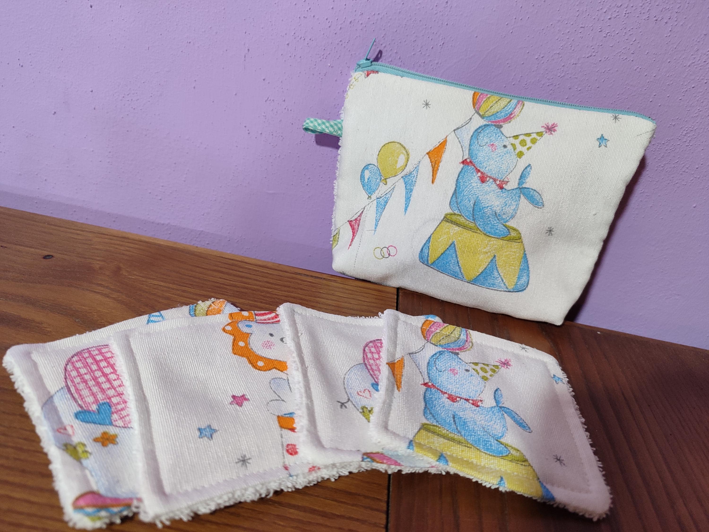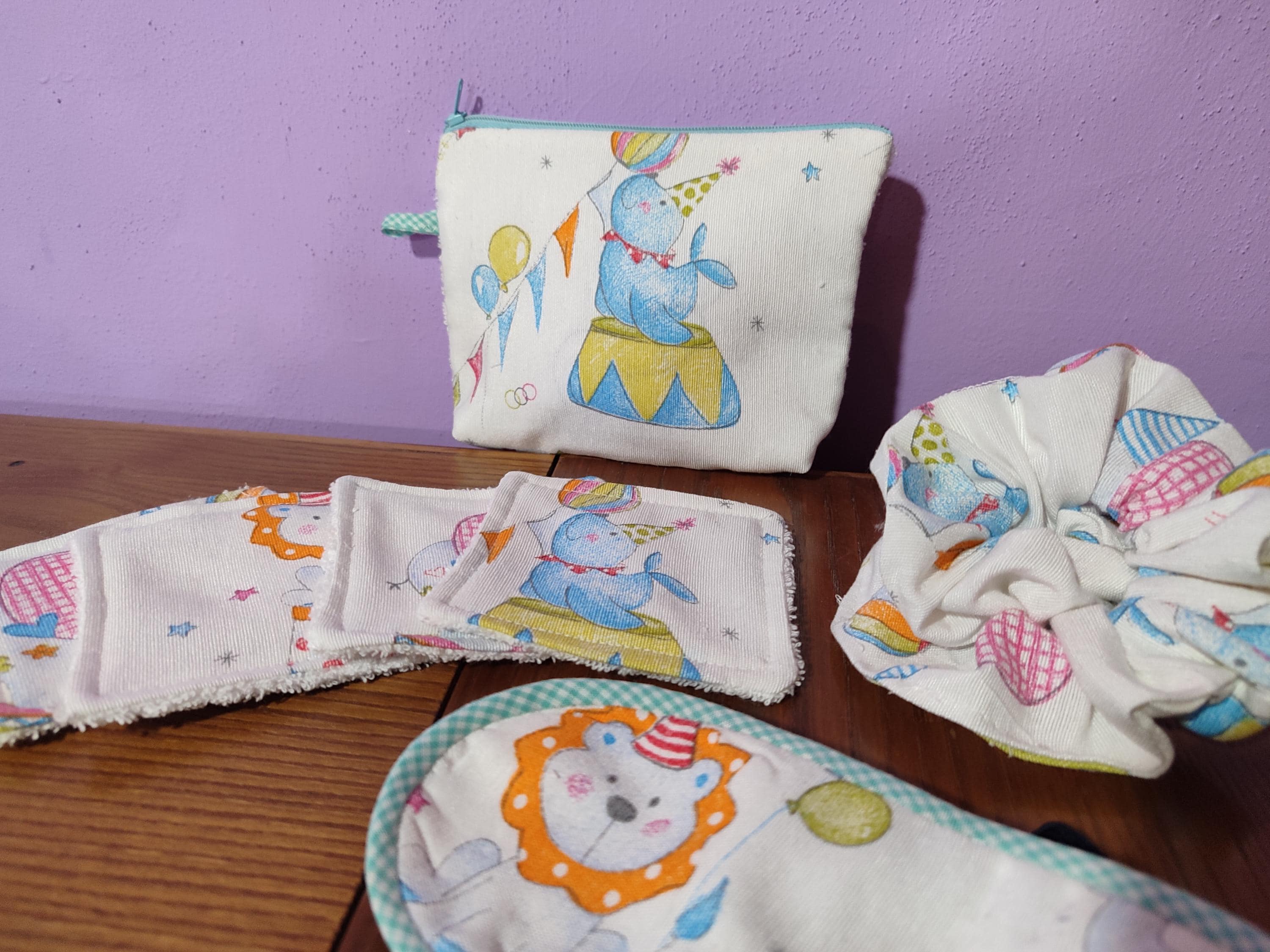 Perfect for pajama parties, trips, weekend getaways, or simply for eco-friendly, comfortable, and super-cheerful accessories, thanks to the colorful pattern featuring cute circus animals.